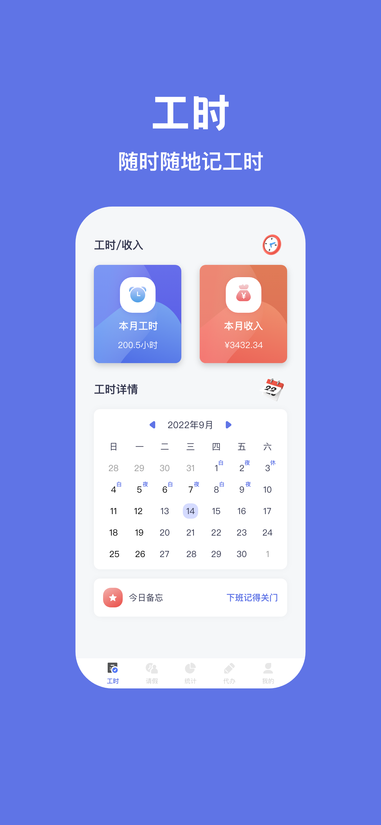 【上什么班】是一款记录上班事件统计的应用,不论你是白班、夜班,还是早、中、晚班,又或是调休、请假,都可以方便的记录下来,每天记录上班和休息的情况,自动统计工作市场和工资收入情况,每个月还会有柱状图统计当月的上班和请假情况,清晰明了。此外,你还可以添加待办,将重要的事情记录下来,能起到提醒作用。总之,这是一款非常好用的上班事件记录类的应用,各位上班族的朋友不要错过哦~